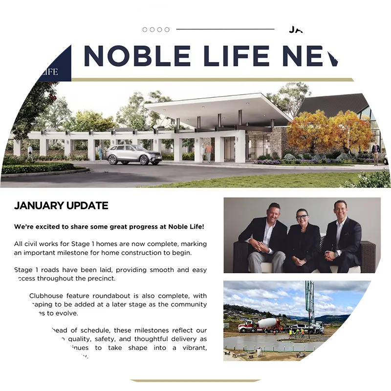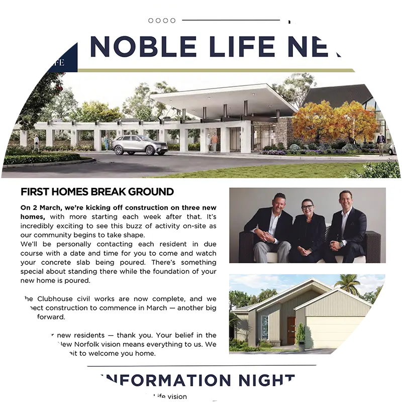 We hope you enjoy learning about Noble Life and we look forward to being in contact with you to discuss your possibilities with New Norfolk Lifestyle Resort.